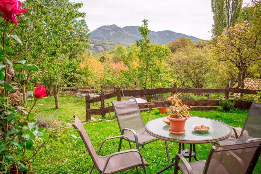 Es una de las zonas comunes más valoradas y especiales de nuestro alojamiento. Oxígeno puro. Sencillamente, un espacio para relajarse y disfrutar en cualquier época del año. En este lugar, que cambia de color con cada estación, las sensaciones son únicas. Leer un buen libro a la sombra de un árbol, perderse con la mirada en el dibujo de los paisajes, jugar con los niños con total tranquilidad o darse un homenaje gastronómico en la barbacoa. Empezad por donde queráis.